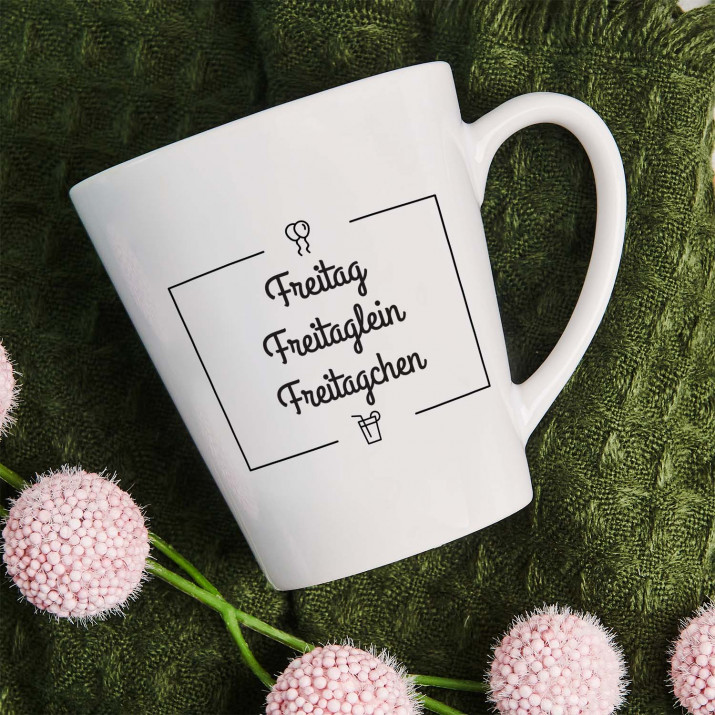 Perfekte Freitagstasse – die Zeit vergeht so schnell, wenn wir bei der Arbeit Kaffee aus so einer Tasse trinken! Bald wird die Uhr sechzehn schlagen und Wochenende ankündigen!ANFERTIGUNG