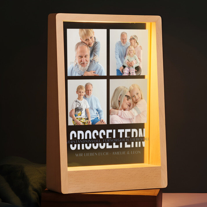 Druck auf Acrylglas mit Holzsockel.