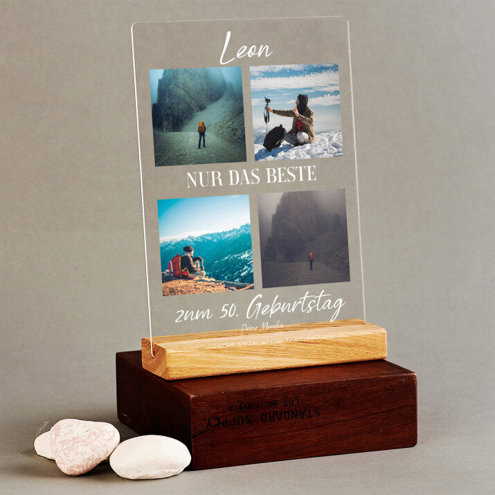 Druck auf Acrylglas mit Holzsockel.