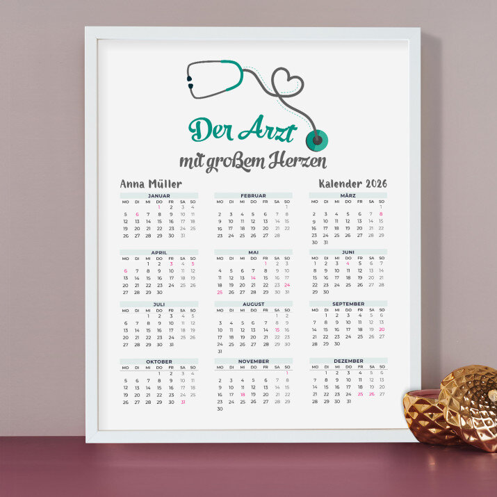 Ein personalisierter gerahmter Kalender ist eine tolle Geschenkidee, die zu jeder Einrichtung passt! Das ganze Jahr wurde auf einer Seite platziert, so dass die Anordnung der Monate gut ersichtlich ist. Der Druck auf Fotopapier sieht wunderschön aus, die Farben sind gesättigt und der Effekt ist lang anhaltend. Ein tolles Geschenk und Andenken in einem!Abmessungen: 40 x 50 cm