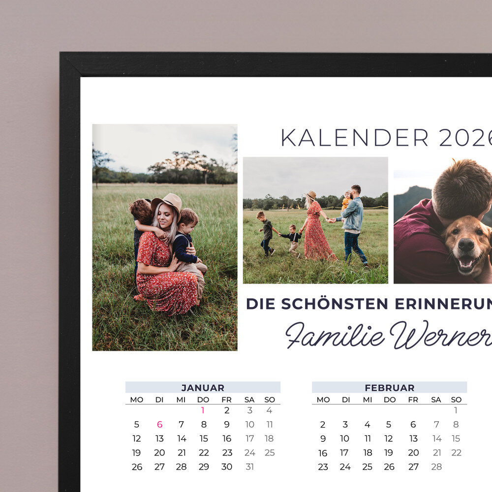 Ein personalisierter gerahmter Kalender ist eine tolle Geschenkidee, die zu jeder Einrichtung passt! Das ganze Jahr wurde auf einer Seite platziert, so dass die Anordnung der Monate gut ersichtlich ist. Der Druck auf Fotopapier sieht wunderschön aus, die Farben sind gesättigt und der Effekt ist lang anhaltend. Ein tolles Geschenk und Andenken in einem!Abmessungen: 40 x 50 cm