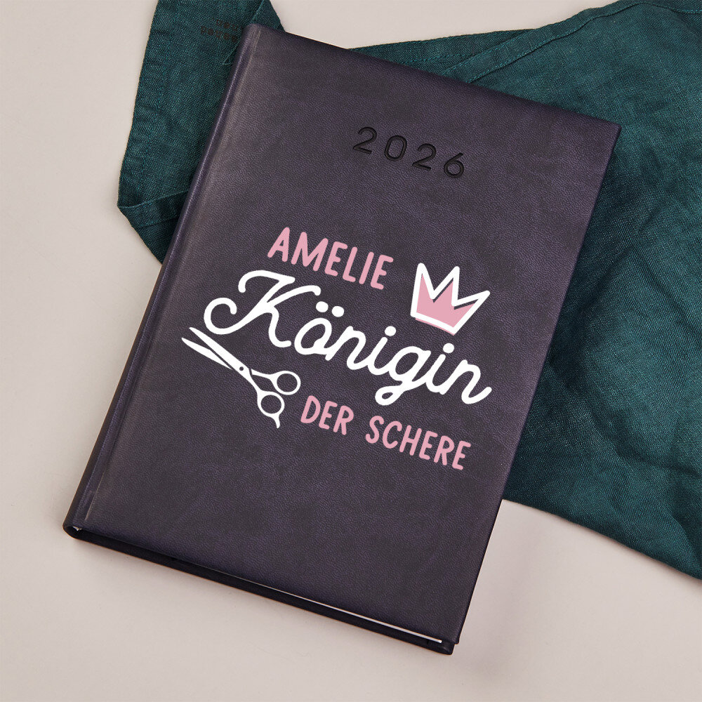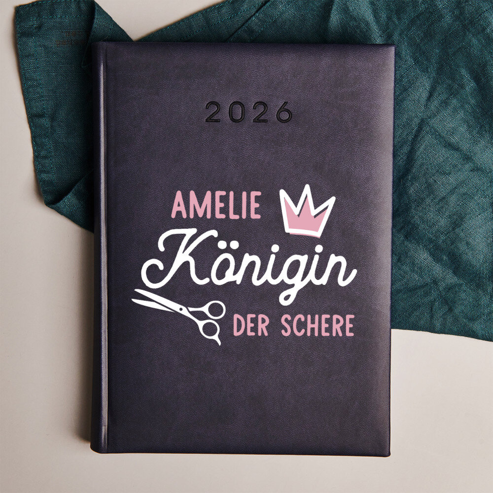 Buchkalender im DIN-Format A5 mit hochwertiger Gravur. Der Kalender wird mit weichem Material mit Besatz am Rande eingebunden.