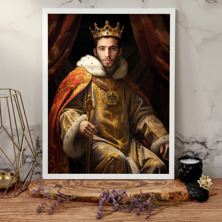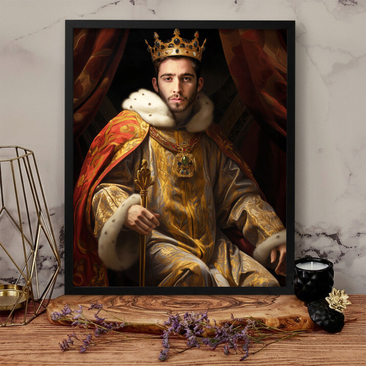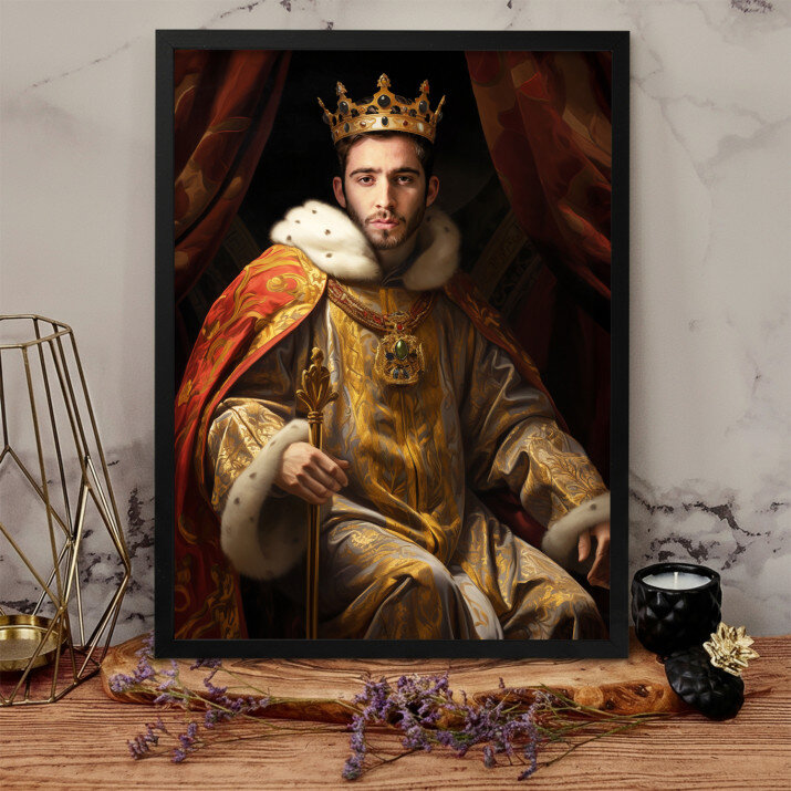 Jetzt auf dem Königsporträt sein! Das ist ein einzigartiges Bild, das wir von Ihrem Foto erstellen. Ein besonderes Geschenk, das einem geliebten Menschen das Gefühl geben kann, ein echter Herrscher zu sein! Alles, was wir brauchen, ist ein Foto von guter Qualität, damit unser Grafiker ein Porträt in dem von Ihnen gewünschten Stil anfertigen kann. Das so entstandene Geschenk wird Ihre Liebsten sicher beeindrucken!AUSFÜHRUNG