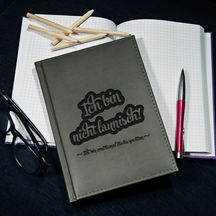 Notizbuch im Format A5 mit hochwertigem Aufdruck.