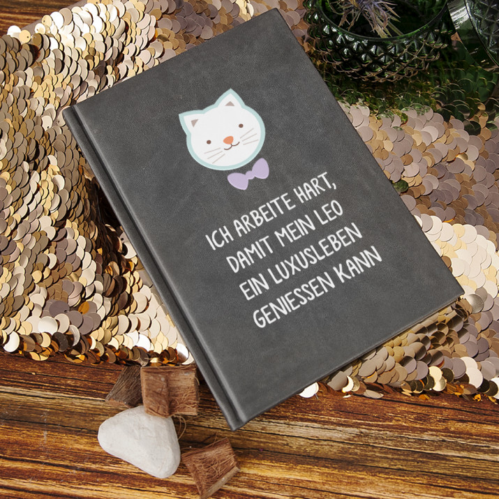 Kennen Sie vielleicht jemanden, der alle Gespräche beim gemeinsamen Kaffeetrinken in die Katzen-Themen lenkt? Schenken Sie ihm dieses personalisierte Notizbuch mit dem Namen seiner liebsten Katze. Garantie der Zufriedenheit!