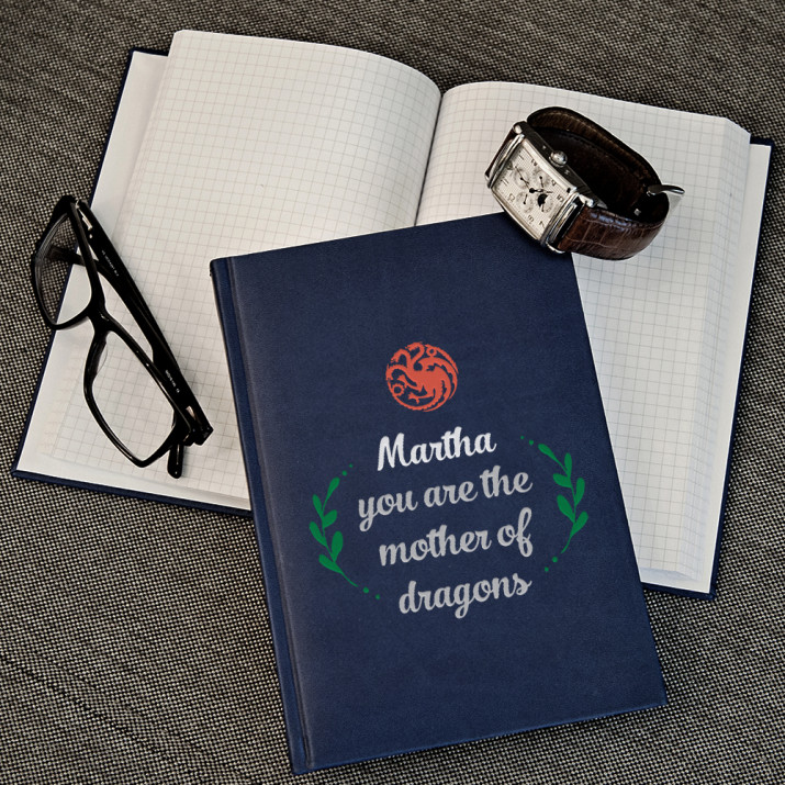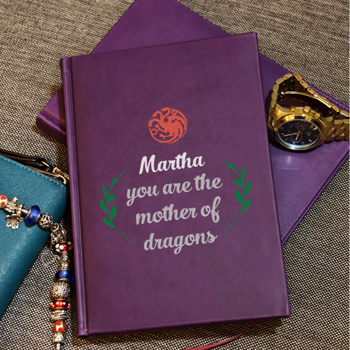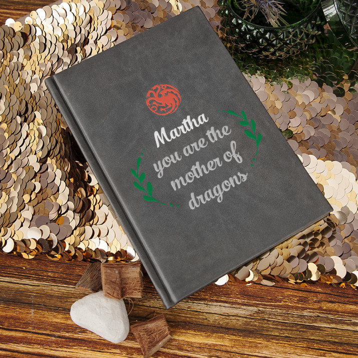 Alle bewundern Deanerys, die nicht nur hübsch, sondern auch intelligent und kampfbereit ist. Mit diesem personalisierten Notizbuch können Sie oder die Beschenkte sich wie die Mutter der Drachen fühlen.