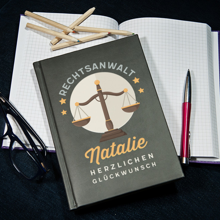 Notizbuch im Format A5 mit hochwertigem Aufdruck.