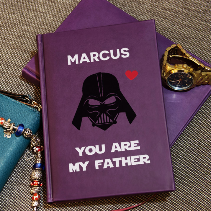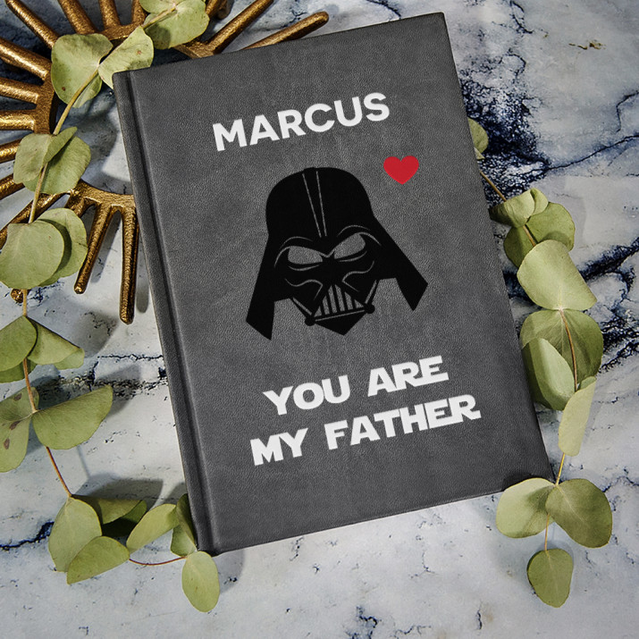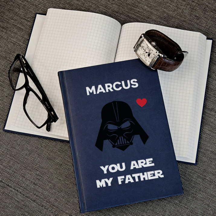 Was braucht ein echter Star Wars Fan, wenn er schon alle Folgen der Saga im Regal gespeichert hat? Schenken Sie ihm ein einzigartiges Notizbuch mit einem gravierten Abbild von Darth Vader und dem Namen Ihres Papas. Das Buch wird Ihren Papa sicherlich begeistern!