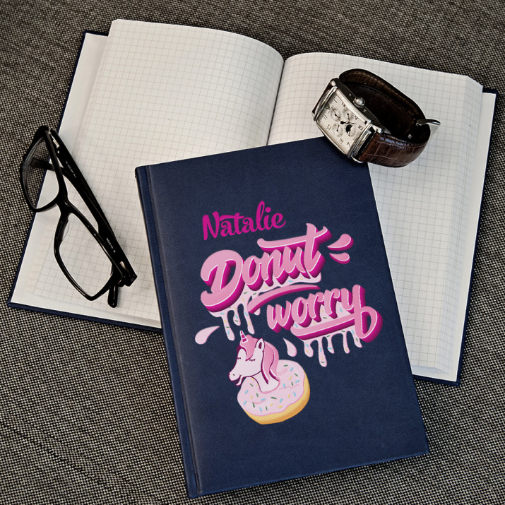 Notizbuch im Format A5 mit hochwertigem Aufdruck.