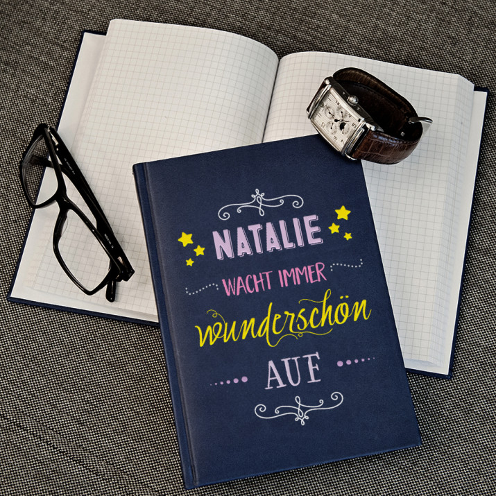 Notizbuch im Format A5 mit hochwertigem Aufdruck.