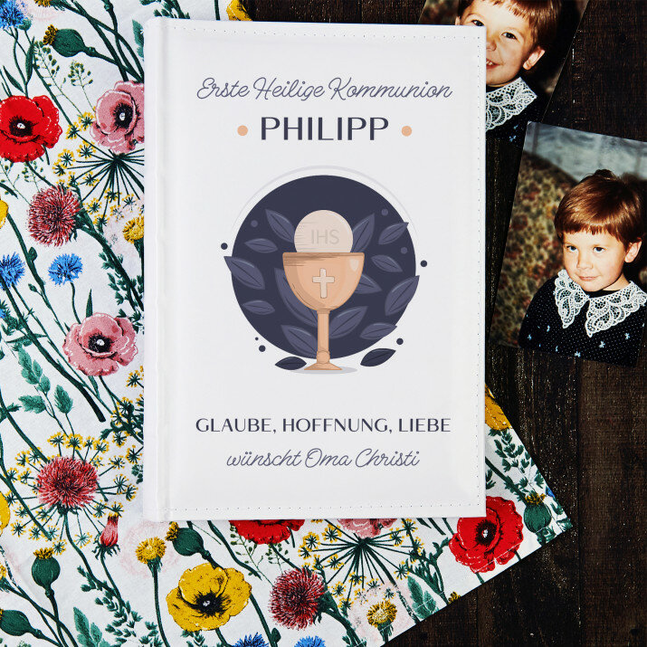 Erste Heilige Kommunion Glückwünsche - personalisiertes Fotoalbum