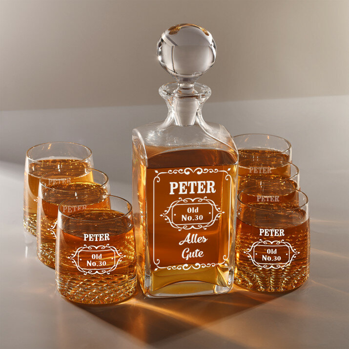 Set mit gravierter Karaffe und Whisky-Gläsern in vier Optionenerhältlich:Karaffe + 1 Glas