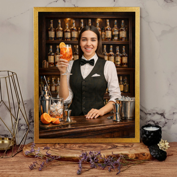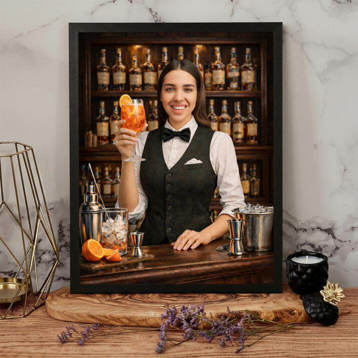 Das von Ihnen bestellte Bild wird sorgfältig in einen dekorativen Holzrahmen gefasst. Die schwarze Farbe und das moderne Design werden dem Beschenkten sicherlich gefallen!