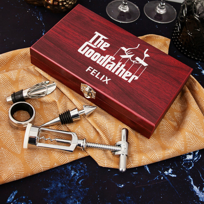 Ein tolles und originelles Geschenk für jeden Vater! Wenn Sie ihm dieses Weinset schenken, zeigen Sie dem guten Vater (The Goodfather) die ihm gebührende Hochachtung. Ein starkes Weinset - ideal nicht nur für italienischen Wein!