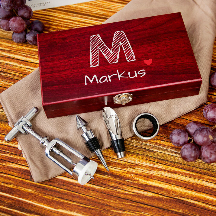 Alle bringen eine Flasche Wein als Geburtstagsgeschenk... Heben Sie sich von der Masse hervor und schenken Sie dieses Weinset! Mit dem eingravierten Namen der beschenkten Person wird sich das Geschenk herrlich präsentieren!