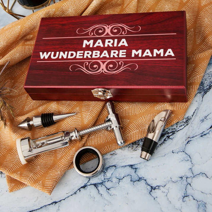 Zum Muttertag schenken Sie Ihrer Mama dieses Jahr etwas Beeindruckendes! Dieses stilvolle Weinset wird sicherlich sehr gut ankommen und Ihre Mutter mit der netten Aufschrift bewegen.