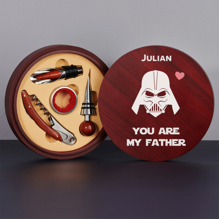 Falls Ihr Vater Star Wars liebt oder einfach Sinn für Humor hat, wird ihm dieses Geschenk bestimmt gefallen! Das Weinset mit dem Abbild von Darth Vader und dem berühmten Filmzitat ist mächtig!