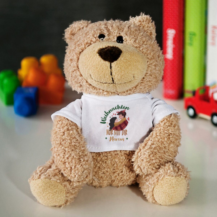 Der Aufdruck befindet sich auf der Vorderseite des Kuscheltiers.