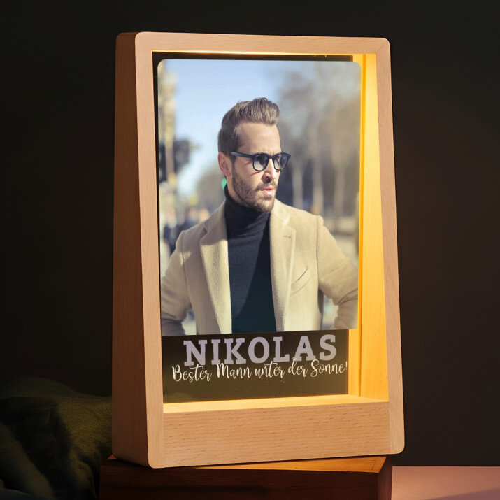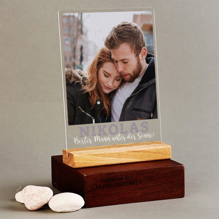 Druck auf Acrylglas mit Holzsockel.