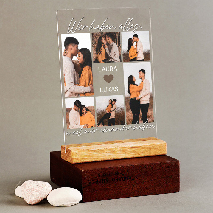 Druck auf Acrylglas mit Holzsockel.