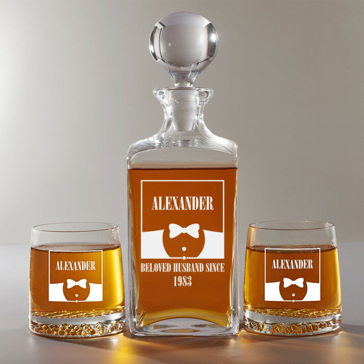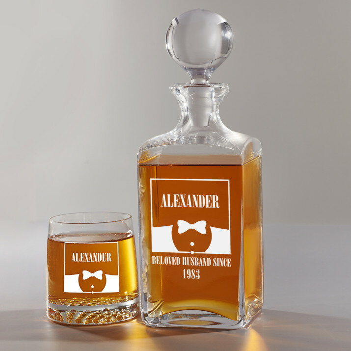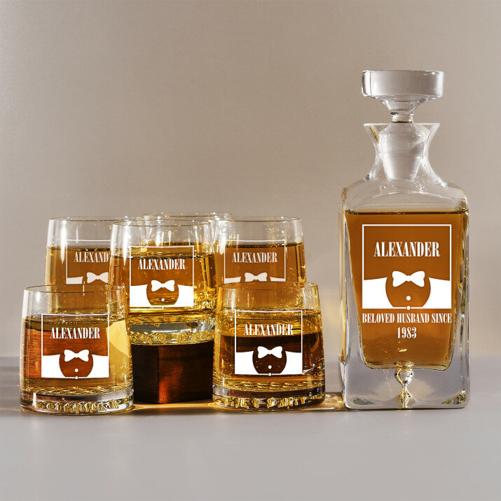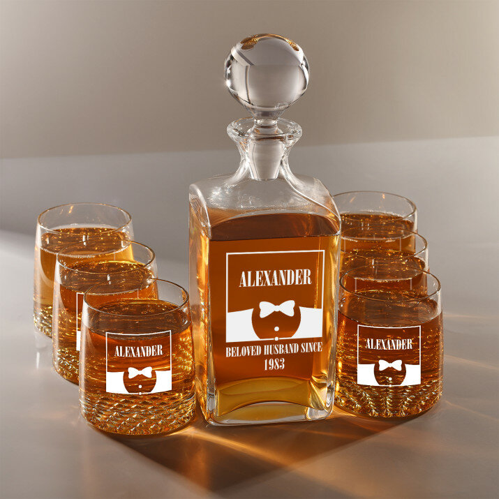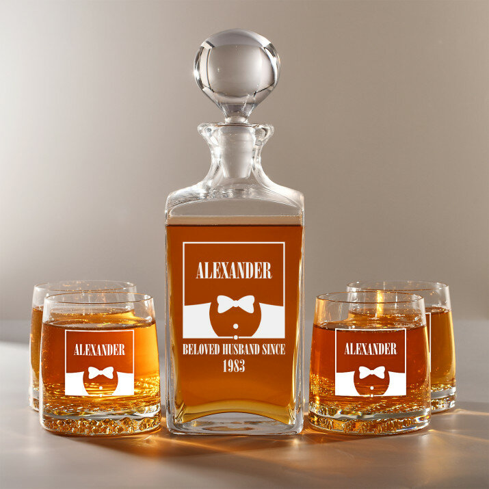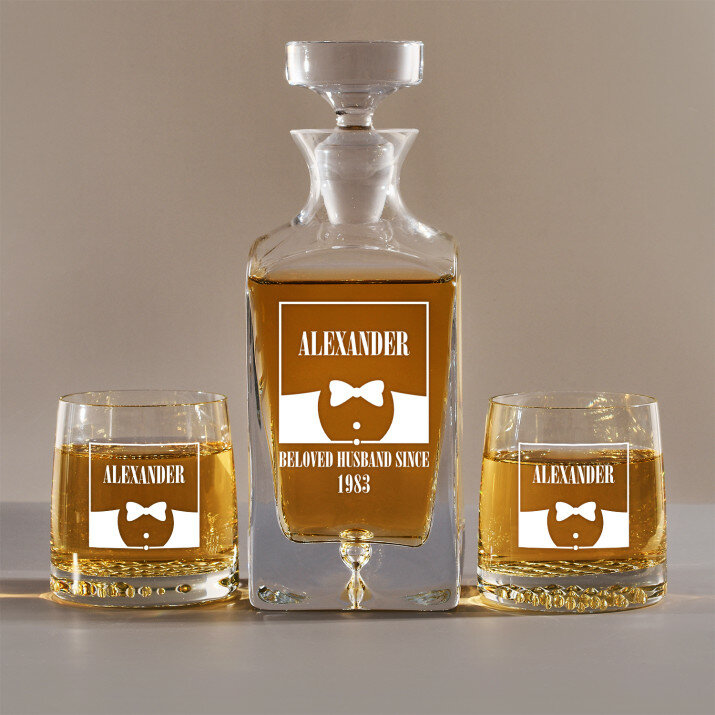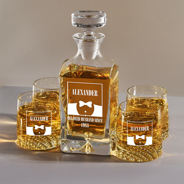 Set mit gravierter Karaffe und Whisky-Gläsern in vier Optionenerhältlich: