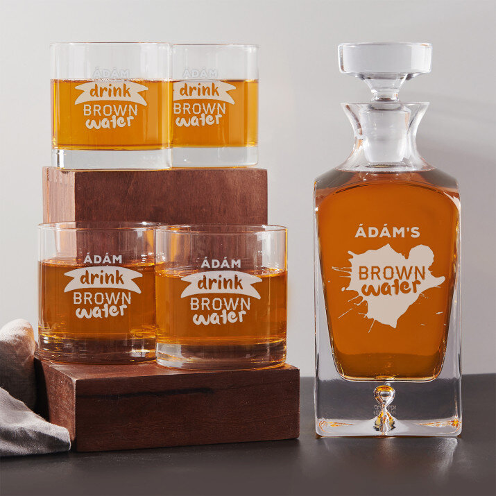 Set mit gravierter Karaffe und Whisky-Gläsern in vier Optionenerhältlich: