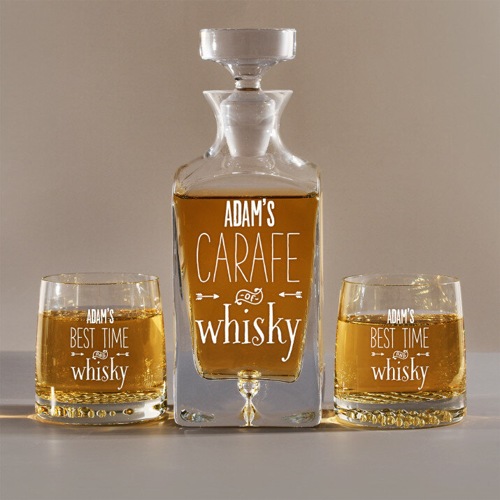 Set mit gravierter Karaffe und Whisky-Gläsern in vier Optionenerhältlich:Karaffe + 1 Glas