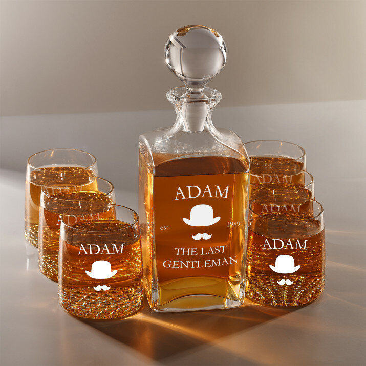 Set mit gravierter Karaffe und Whisky-Gläsern in vier Optionenerhältlich:Karaffe + 1 Glas