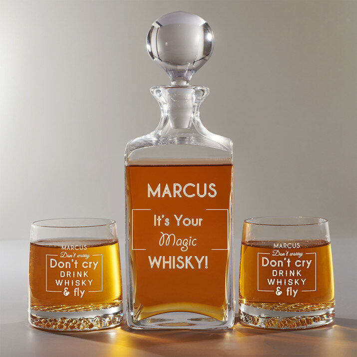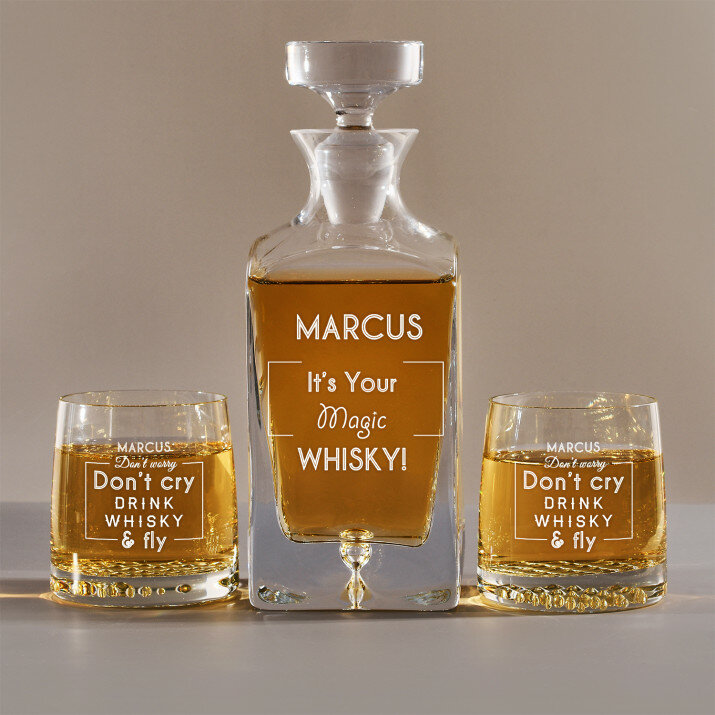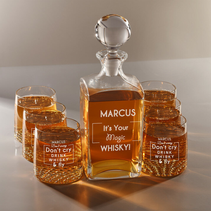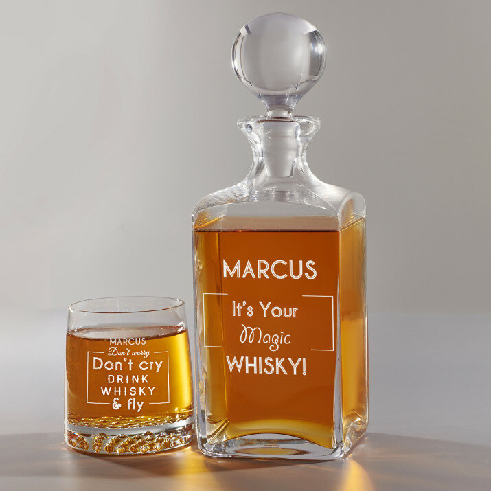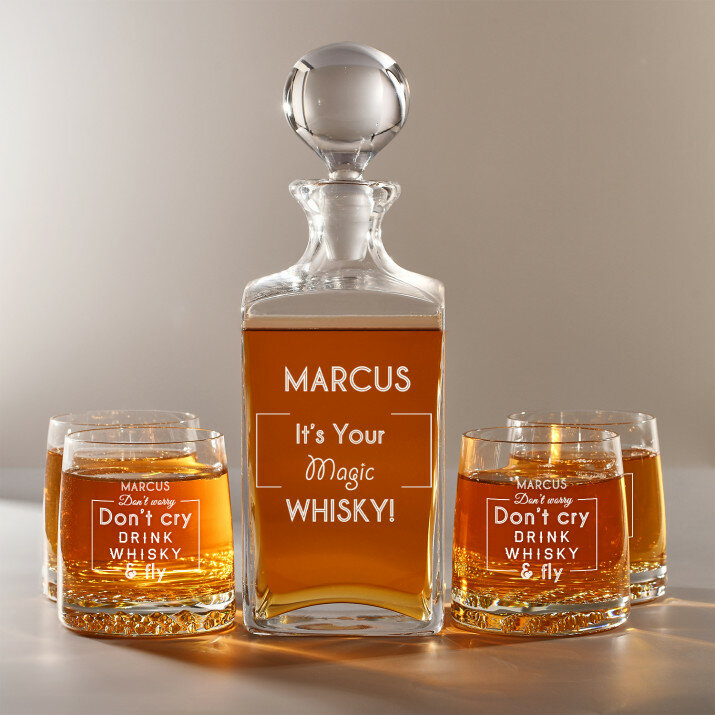 Set mit gravierter Karaffe und Whisky-Gläsern in vier Optionenerhältlich: