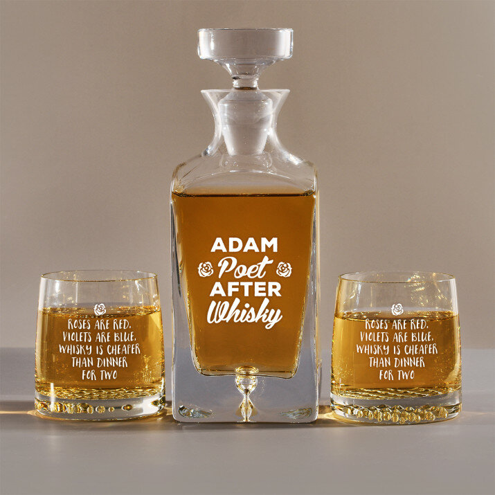 Kennen Sie jemanden, der normalerweise kein beredter Mensch ist, aber nach ein paar Gläsern zu einem echten Dichter wird? Schenken Sie ihm dieses Set mit einer lustigen Gravur!