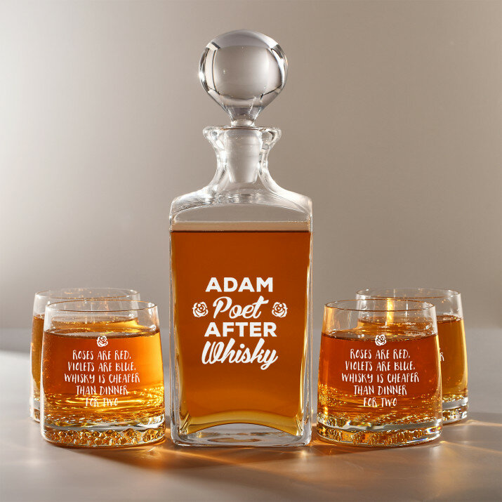 Set mit gravierter Karaffe und Whisky-Gläsern in vier Optionenerhältlich: