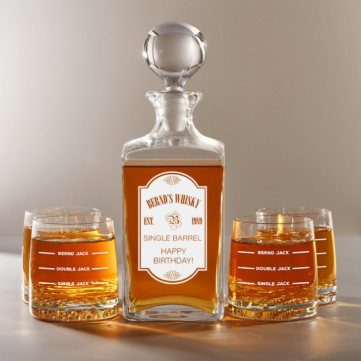 Set mit gravierter Karaffe und Whisky-Gläsern in vier Optionenerhältlich:Karaffe + 1 Glas