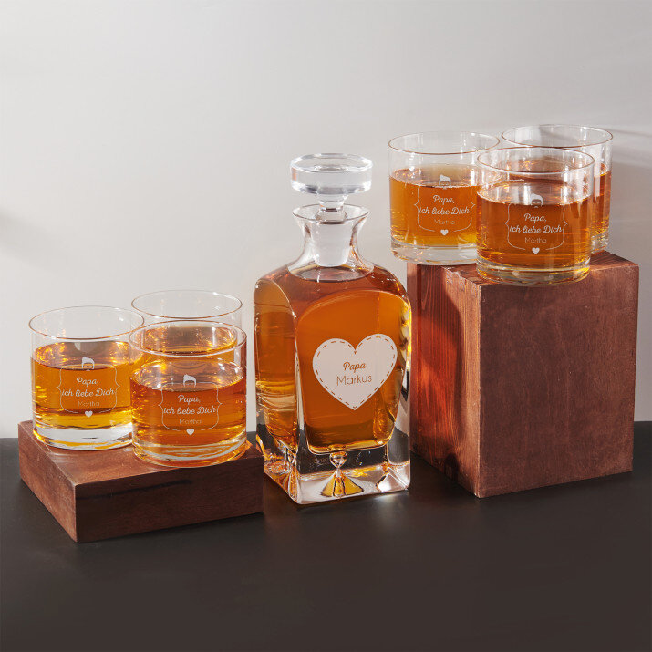 Set mit gravierter Karaffe und Whisky-Gläsern in vier Optionenerhältlich:Karaffe + 1 Glas