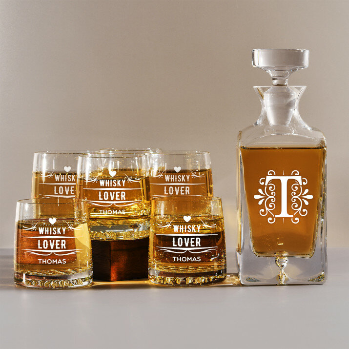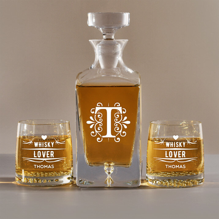 Set mit gravierter Karaffe und Whisky-Gläsern in vier Optionenerhältlich:Karaffe + 1 Glas