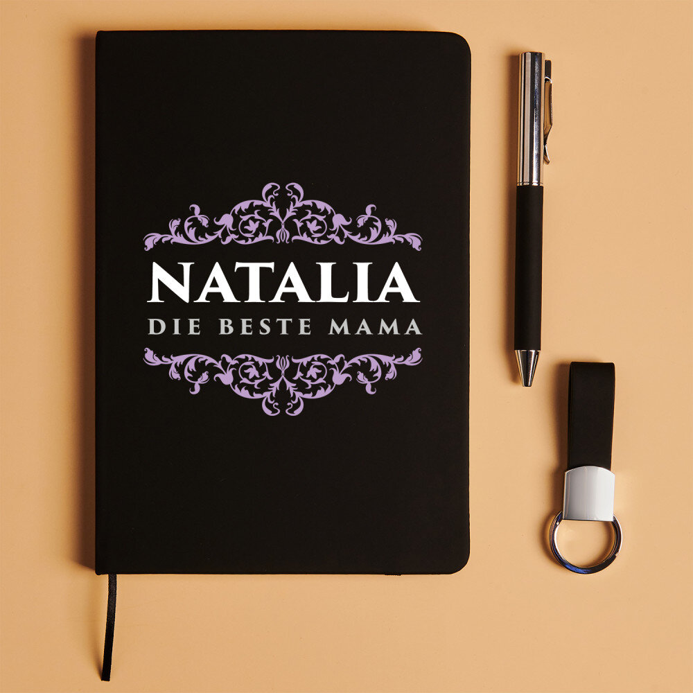 Set mit elegantem Notizbuch mit ausgewählter Personalisierung.