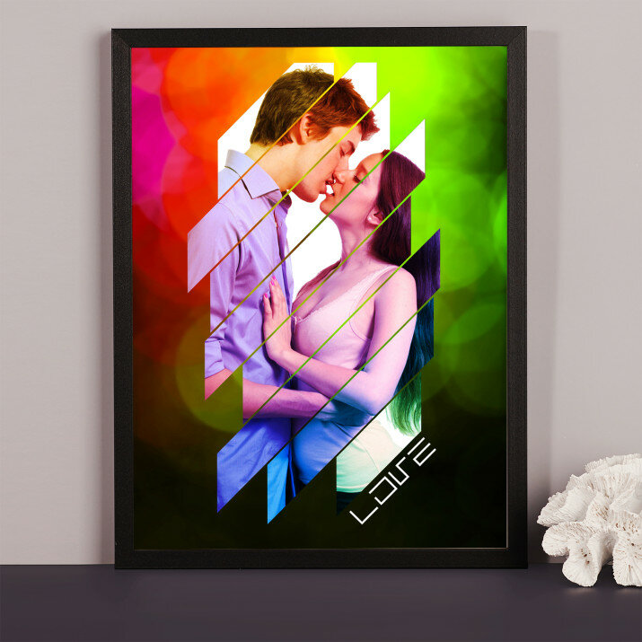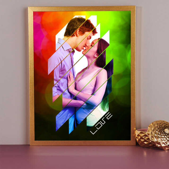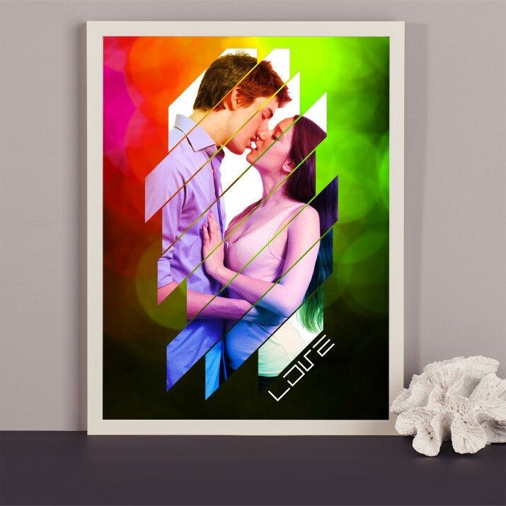Der Designate-Stil zeichnet sich dadurch aus, dass das Foto in diesem Stil in mehrere bunte und dynamische Elemente geteilt wird.