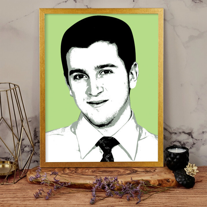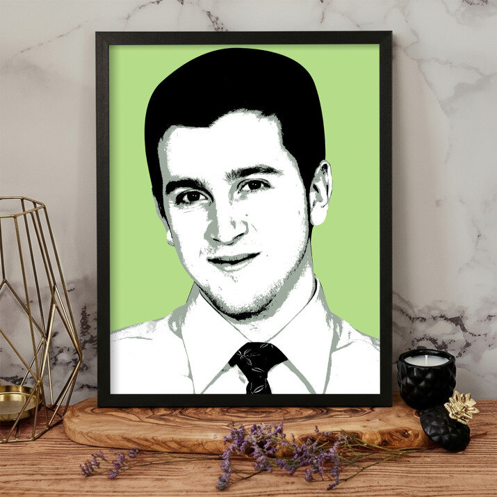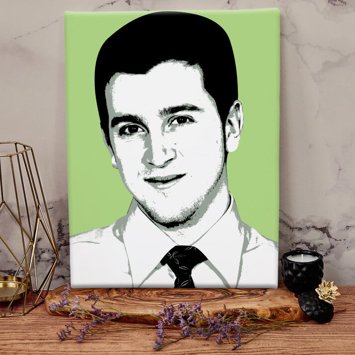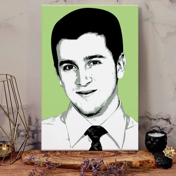 Der Graphic-Stil verbindet eine dominierende Farbe mit einem schwarz-weißen Porträt, das sich aus den Gesichtszügen zusammensetzt. Diese außergewöhnliche Mischung macht ein einzigartiges Bild aus.STILVOLLES LEINWANDBILD