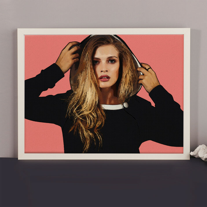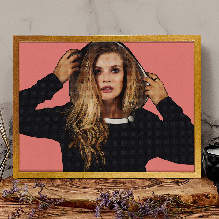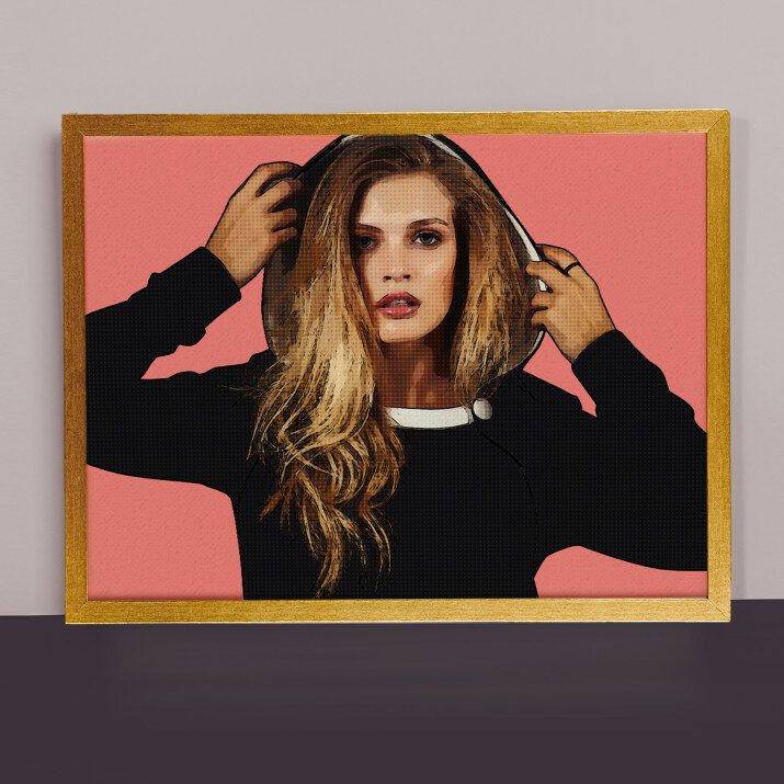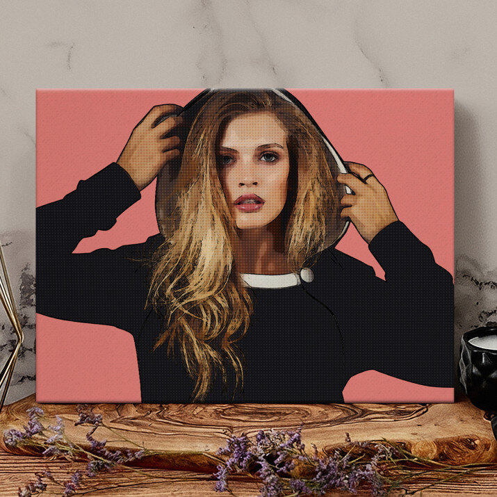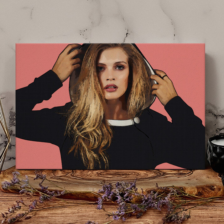 Der Lichtenstein-Stil zeichnet sich durch intensive Farben und scharfen Strich aus. Ihr Porträt kann an die Werke von Roy Lichtenstein anknüpfen, der Personen in illustrierter Form malte.