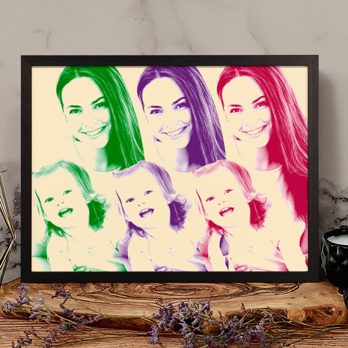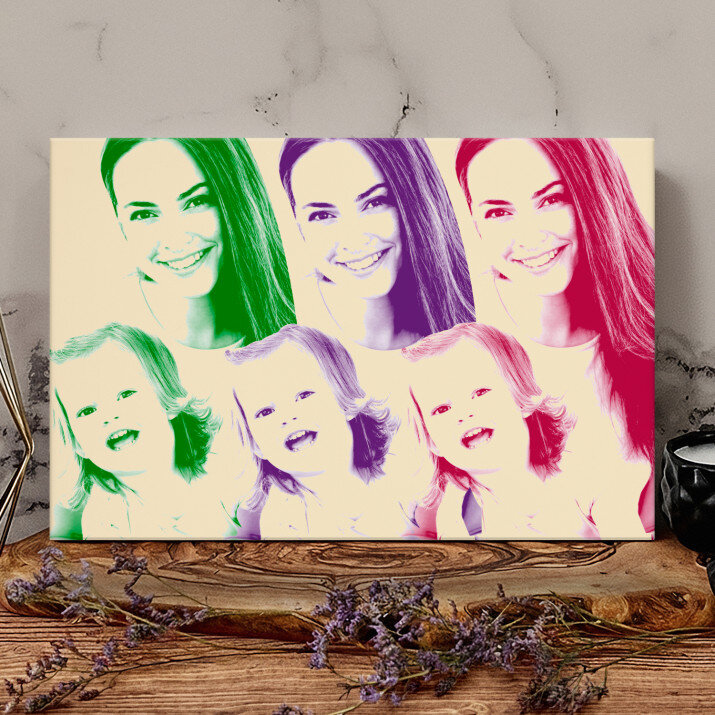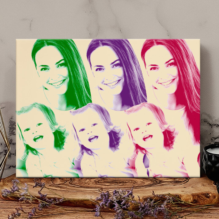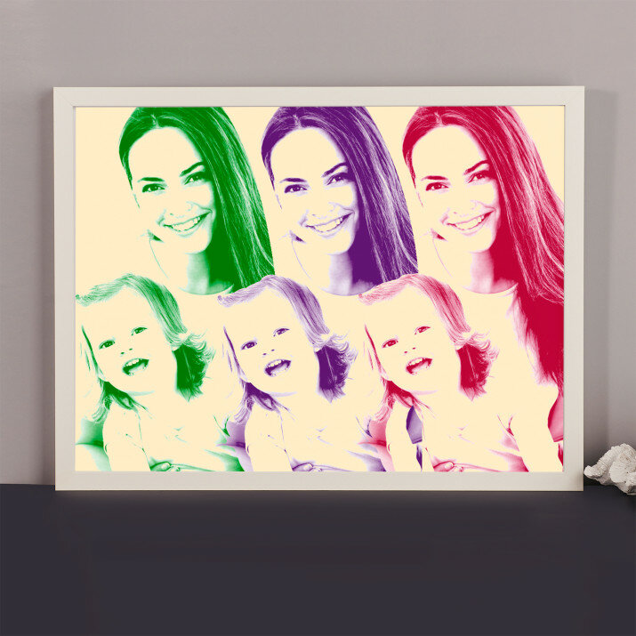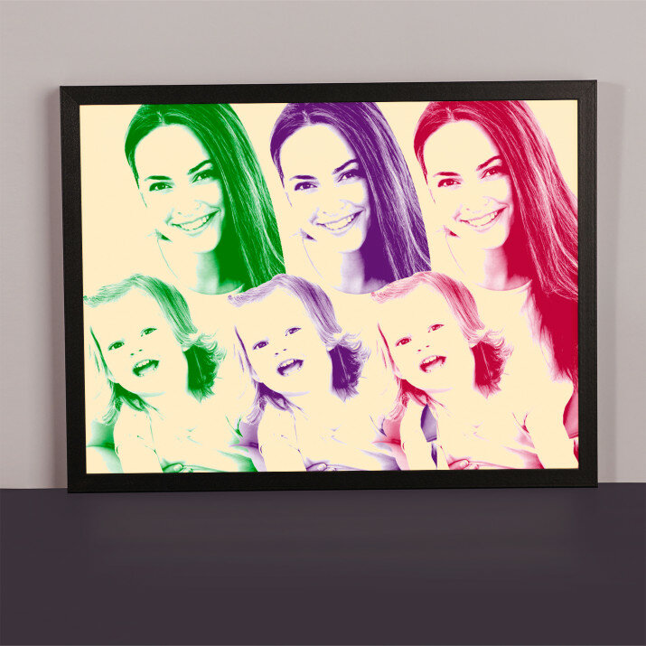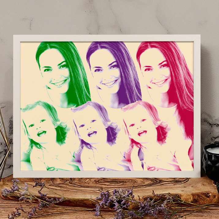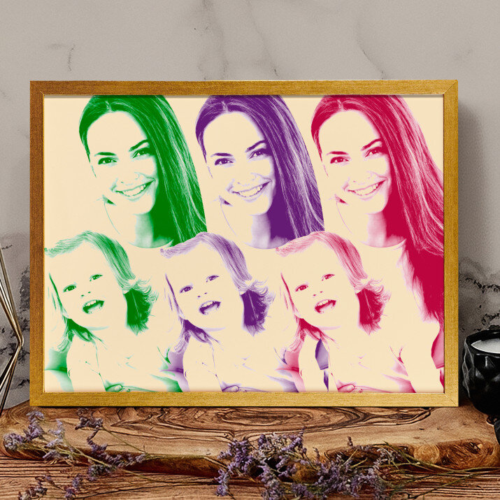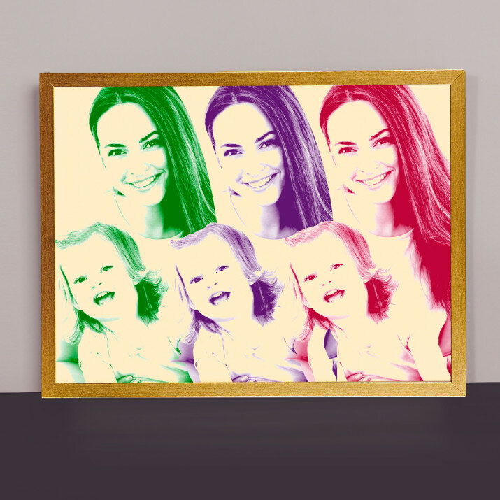 Der Stil Repeated stellt ein Foto in drei total verschiedenen Farben dar. Dieses auffällige Porträt wird Ihre Wohnung auf spannende Art und Weise schmücken.