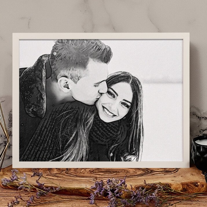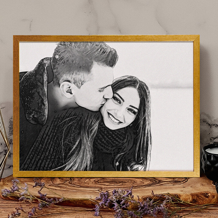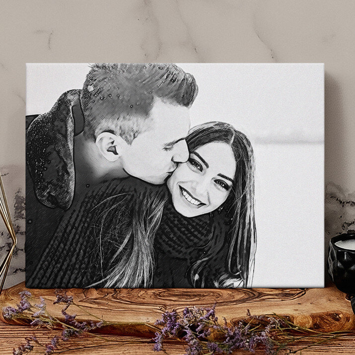 Das Bild im Sketch-Stil ist ein Leinwanddruck, der einer Bleistift-Skizze ähnlich ist. Das Bild wird sorgfältig vorbereitet – es wird bestimmt den Beschenkten mit seiner Detailliertheit beeindrucken!
