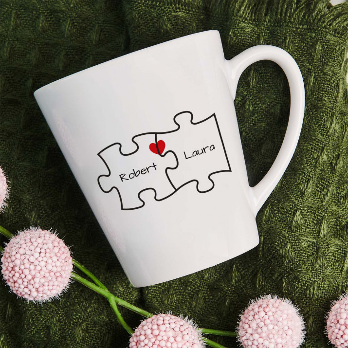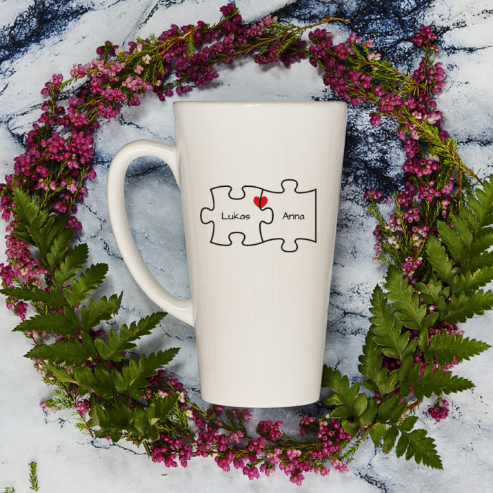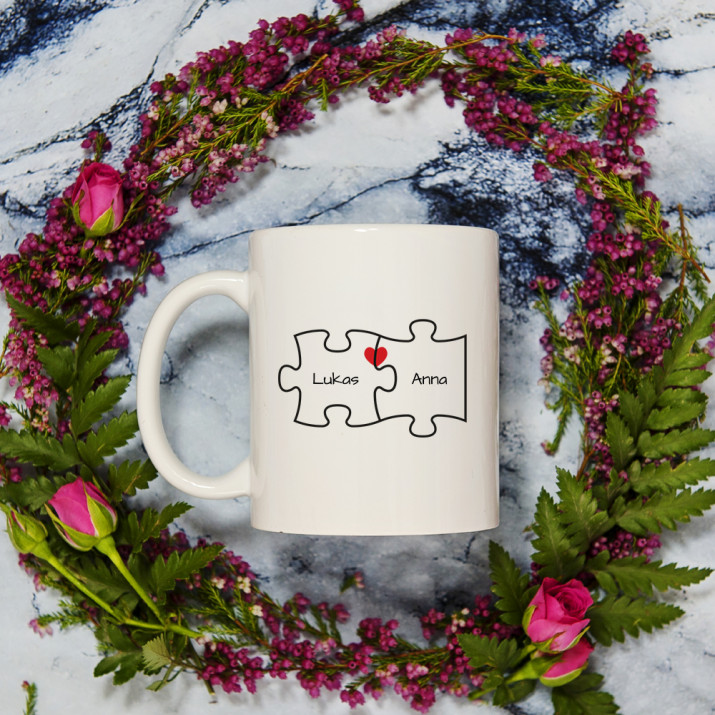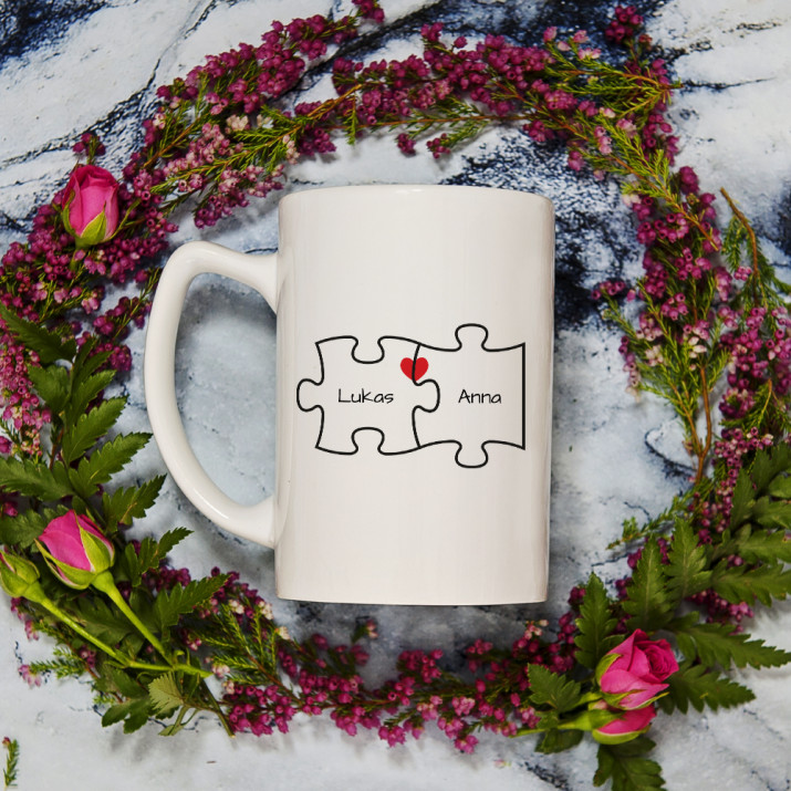Liebe hat viele Namen... Fühlen Sie, dass Sie und Ihre zweite Hälfte zueinander wie zwei Puzzleteile passen? Bringen Sie das mit einer einzigartigen Tasse zum Ausdruck – auf eine einfache, aber tiefe und effektvolle Art und Weise!