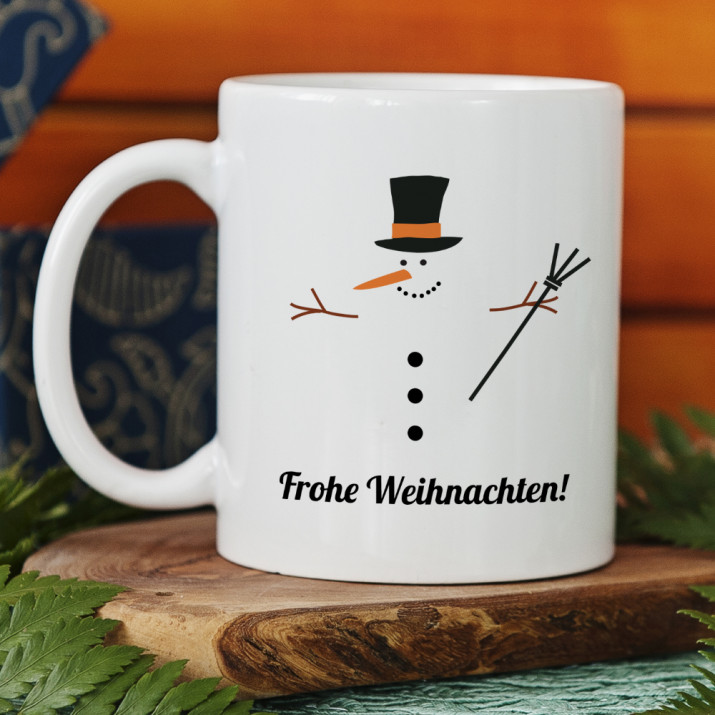FROHE WEIHNACHTEN SCHNEEMANN - PERSONALISIERTE TASSE