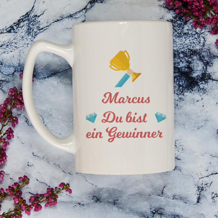 Die Personalisierung dauert nur einen Augenblick. Füllen Sie die Felder in der Sektion "Personalisierung" aus und klicken Sie "in den Warenkorb" - wir schaffen Ihre einzigartige Tasse für Sie.