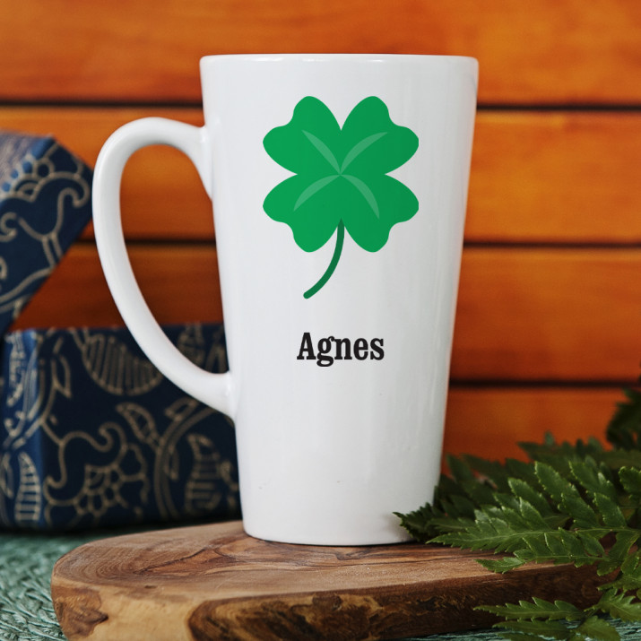 Angeblich kommt in der Natur ein vierblättriges Kleeblatt relativ selten vor. Aber sind Sie sich sicher? Jetzt können Sie Ihr eigenes vierblättriges Kleeblatt auf der Tasse haben!