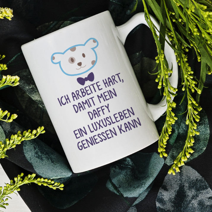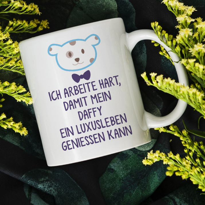 Dieser Becher wird alle Ihren Mitarbeiter darüber informieren, für wen Sie hier eigentlich Überstunden machen. Perfektes Geschenk für alle Fans der Hunde! Versüßen Sie Ihr Hundeleben im Büro mit leckerem Kaffee aus diesem wunderschönen personalisierten Becher!