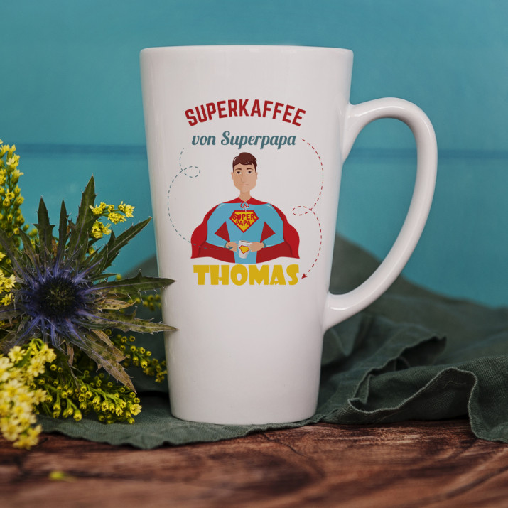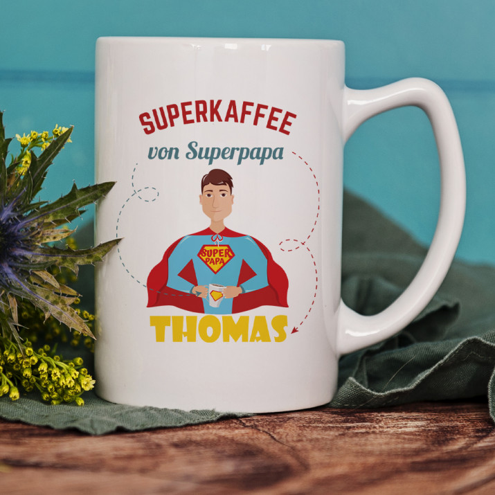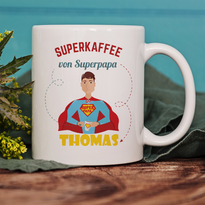Jeder Superheld muss ab und zu neue Kräfte tanken. Läuft Ihr Papa mit Kaffee? Dann ist diese Tasse das perfekte Geschenk für ihn!