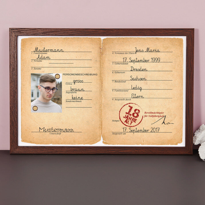 Die Urkunde wird auf Fotopapier im Format 20x30 cm gedruckt und in einen eleganten Rahmen im Format 20x30cm gefasst.