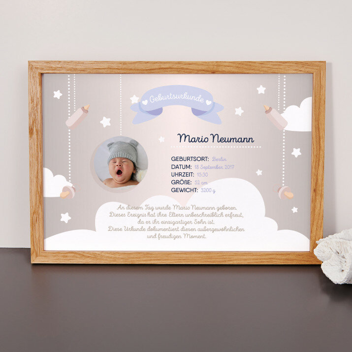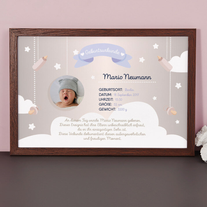 Die Urkunde wird auf Fotopapier im Format 20x30 cm gedruckt und in einen eleganten Rahmen im Format 20x30cm gefasst.