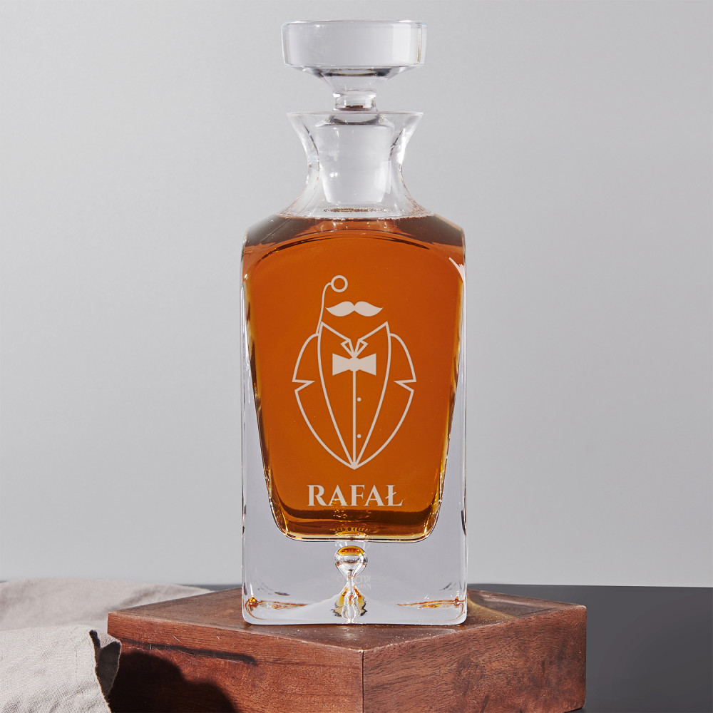 Eine hochwertige Karaffe aus transparentem Glas ist nicht nur ein praktisches Accessoire, sondern auch eine wunderschöne Tischdekoration und ein Geschenk, das sich für viele wichtige Anlässe eignet. In einer solchen Karaffe können Sie Whisky, Likör oder ein anderes Lieblingsgetränk servieren. Die schlichte Form und der elegante Stil machen das Produkt sowohl für Wochenendtreffen mit den Liebsten als auch für festliche Anlässe geeignet. Die quadratische Form bricht das Licht, wodurch die Farbe des Getränks wunderschön zur Geltung kommt. Auf der Oberfläche der Karaffe bringen wir eine personalisierte Gravur an, die dem Geschenk einen einzigartigen Charakter verleiht.Fassungsvermögen: 750 ml