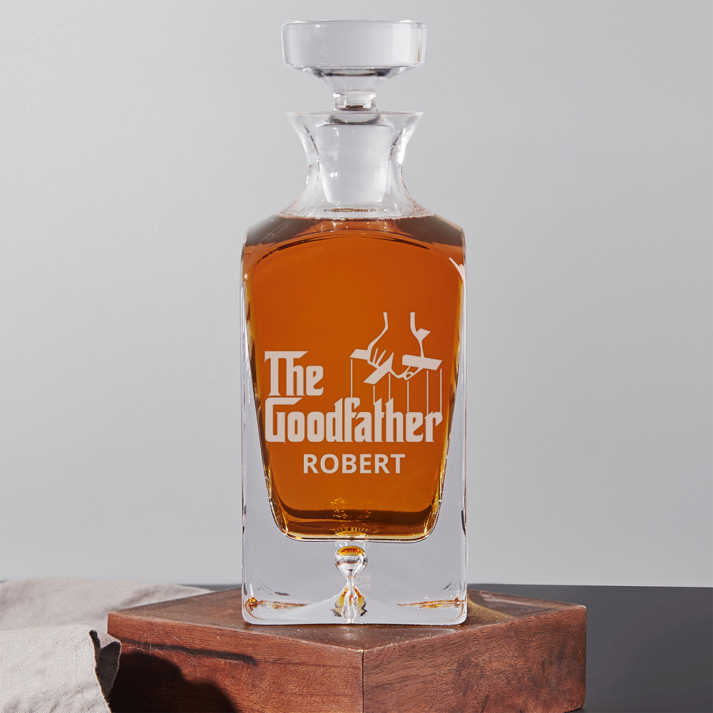 Eine hochwertige Karaffe aus transparentem Glas ist nicht nur ein praktisches Accessoire, sondern auch eine wunderschöne Tischdekoration und ein Geschenk, das sich für viele wichtige Anlässe eignet. In einer solchen Karaffe können Sie Whisky, Likör oder ein anderes Lieblingsgetränk servieren. Die schlichte Form und der elegante Stil machen das Produkt sowohl für Wochenendtreffen mit den Liebsten als auch für festliche Anlässe geeignet. Die quadratische Form bricht das Licht, wodurch die Farbe des Getränks wunderschön zur Geltung kommt. Auf der Oberfläche der Karaffe bringen wir eine personalisierte Gravur an, die dem Geschenk einen einzigartigen Charakter verleiht.Fassungsvermögen: 750 ml